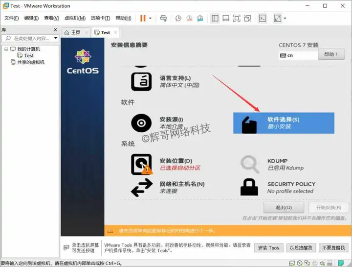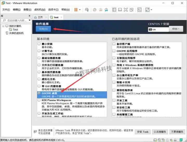 然后点击软件选择,选择GNOME桌面,点击左上方的完成即可