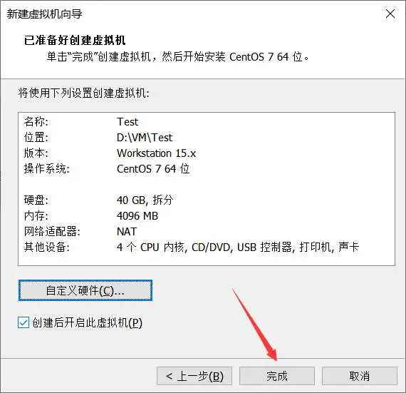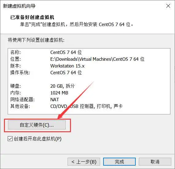 进入到向导的末端的时候先暂停一下,为了能快速的安装好Centos系统,一般来讲第一次都会把配置调高一些,方便系统能快速安装,系统安装好之后再把配置降低。如何调配置呢?请继续看下面的教程!