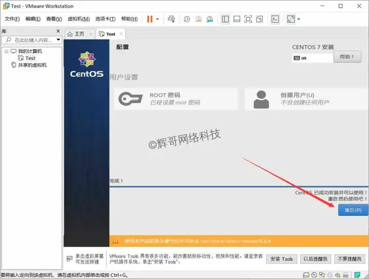 注意:这里设置的ROOT密码一定要记住,默认的Linux用户名为:root,密码即为你设置的密码