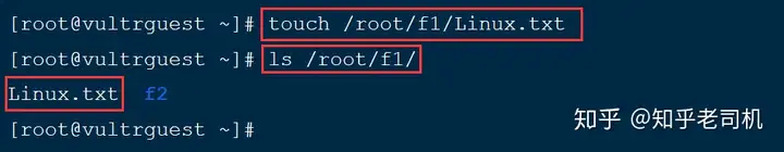 案例3:使用touch在/root/f1指定目录中创建文件Linux.txt
