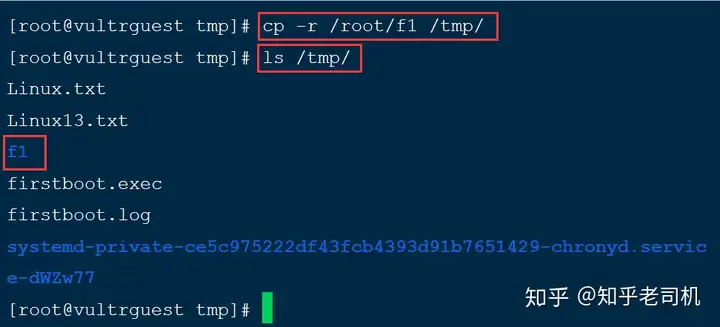 案例3:使用cp命令来复制/root/目录下的f1文件夹到/tmp目录下