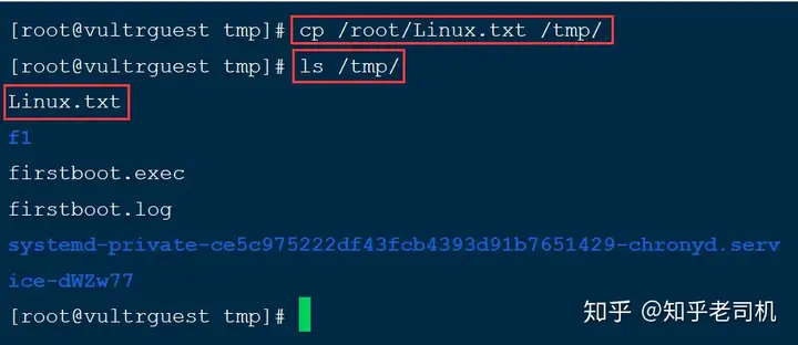 案例1:使用cp命令来复制用户家目录下的Linux.txt到/tmp/目录