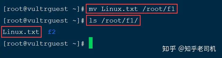案例1:使用mv命令移动一个文件 把Linux.txt移动到/root/f1/目录下