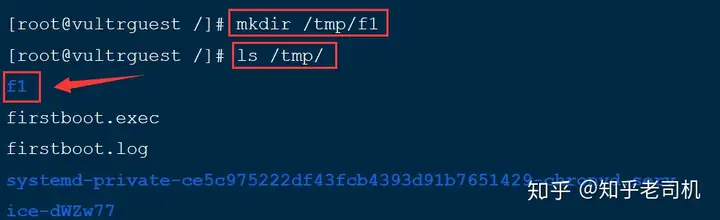 案例2:在指定路径(/tmp/)下创建出一个文件夹“f1”