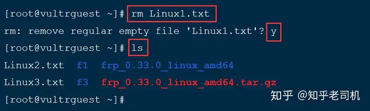 案例1:删除一个文件 用相对路径删除/root/目录下的Linux1.txt